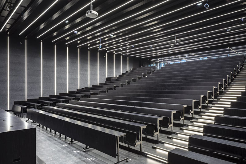普通大學的報告廳在裝修上面就沒有那么講究,一切以簡單為主,可以試著走現代極簡路線,給人留下干凈整潔的印象是不錯的選擇,盡管如此仍需在施工技術上考慮廳內的隔音及消音要求。